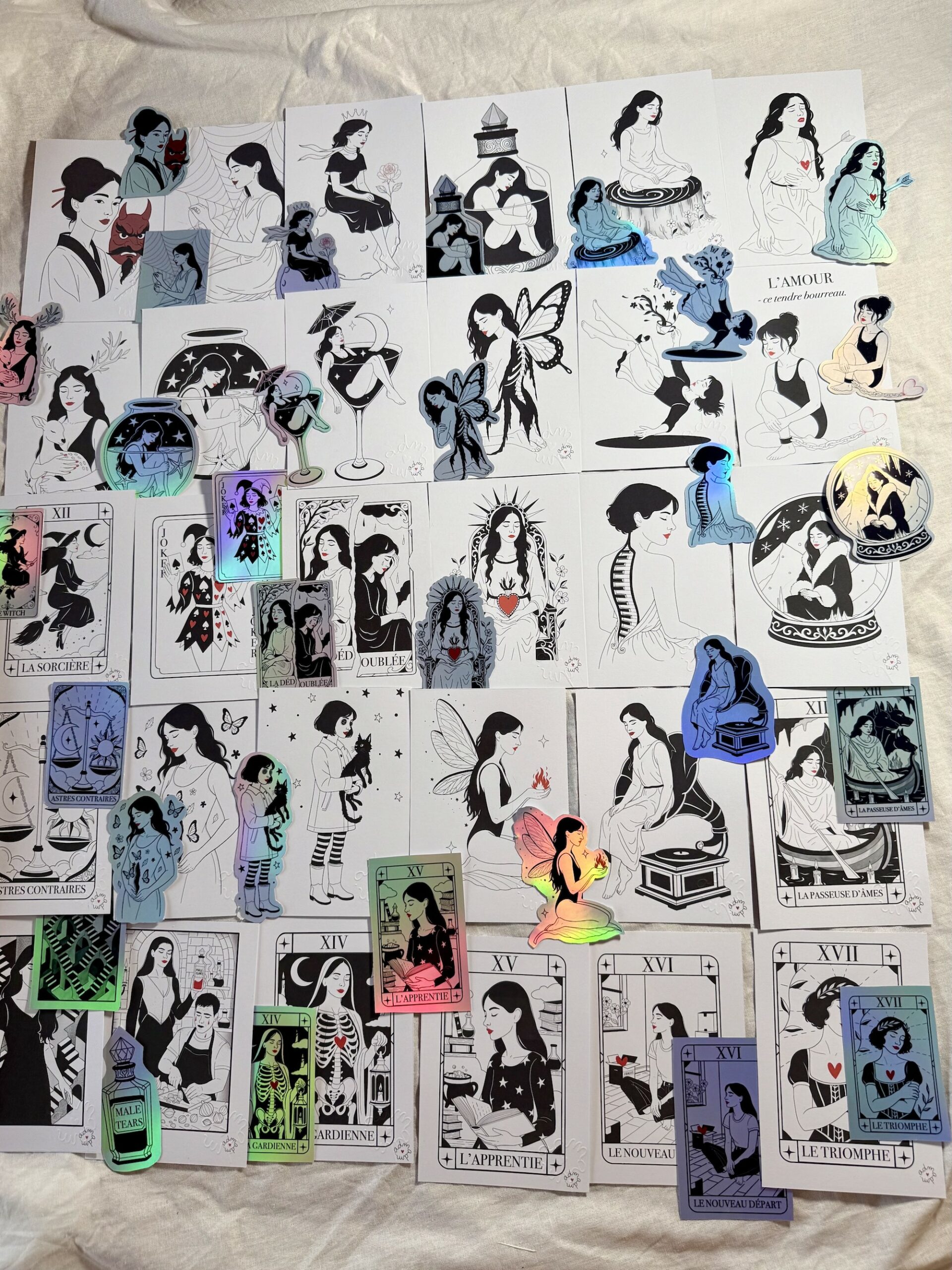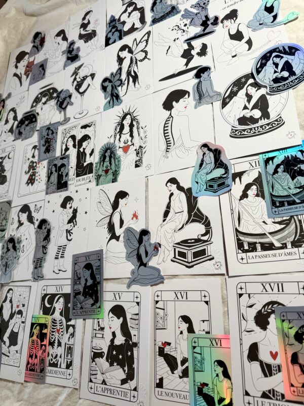 Chaque produit est réalisé par mes soins, de la reflexion à partir de chaque thématique du inktober, à la création graphique, puis à l’impression. Je fais également la découpe de stickers & les impression à la commande – je ne travaille pas avec des prestataires car j’ai à coeur de gérer chaque étape à échelle humaine. Merci pour votre soutien et merci de me permettre de vivre de cette belle aventure artistique. <3