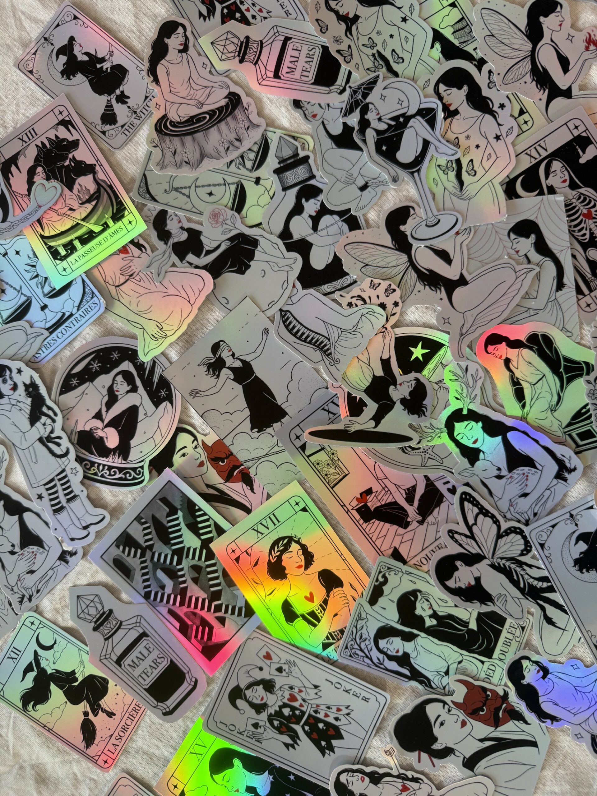 -Le pack de stickers : 31 stickers finition brillant avec revêtement holographique.