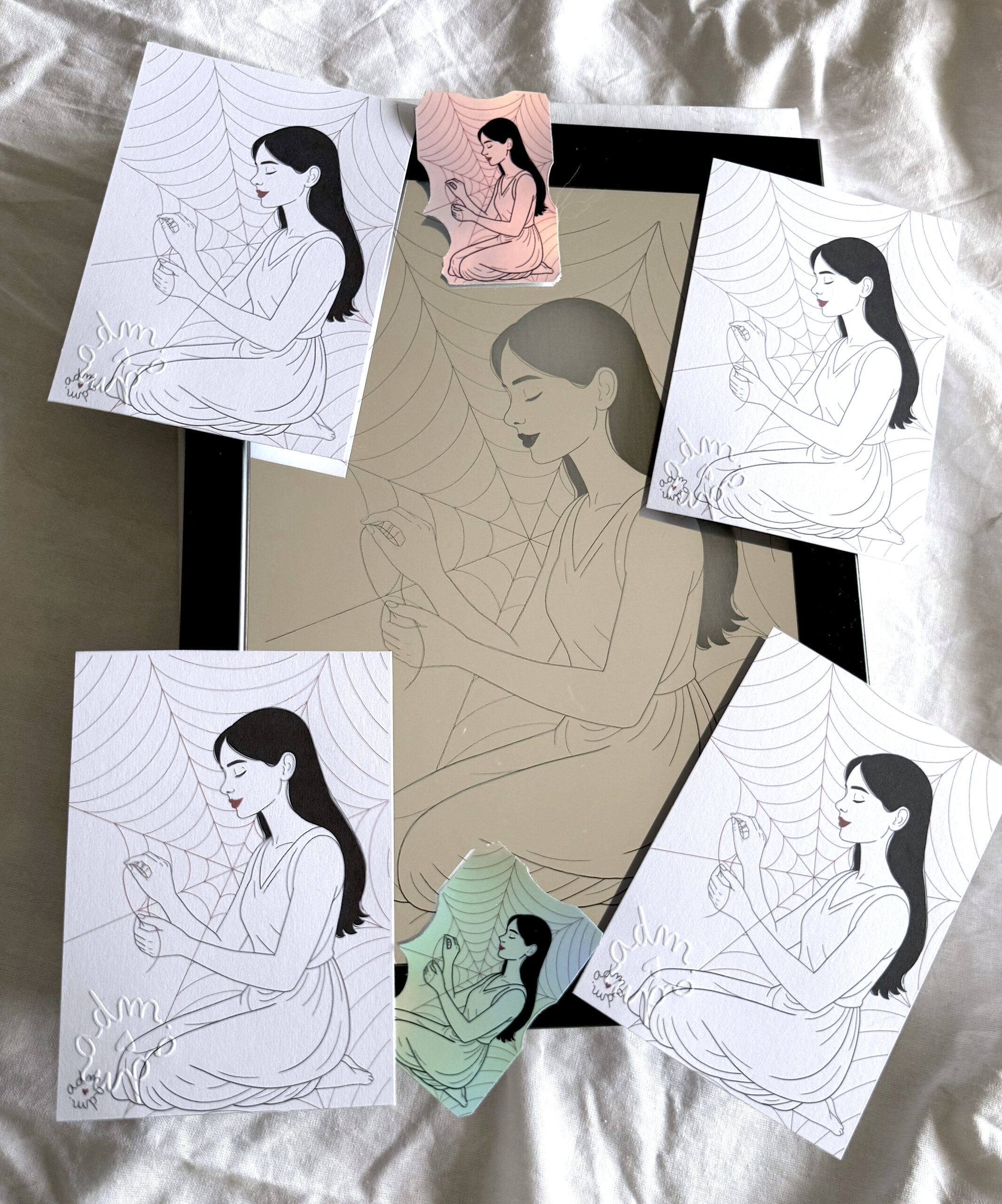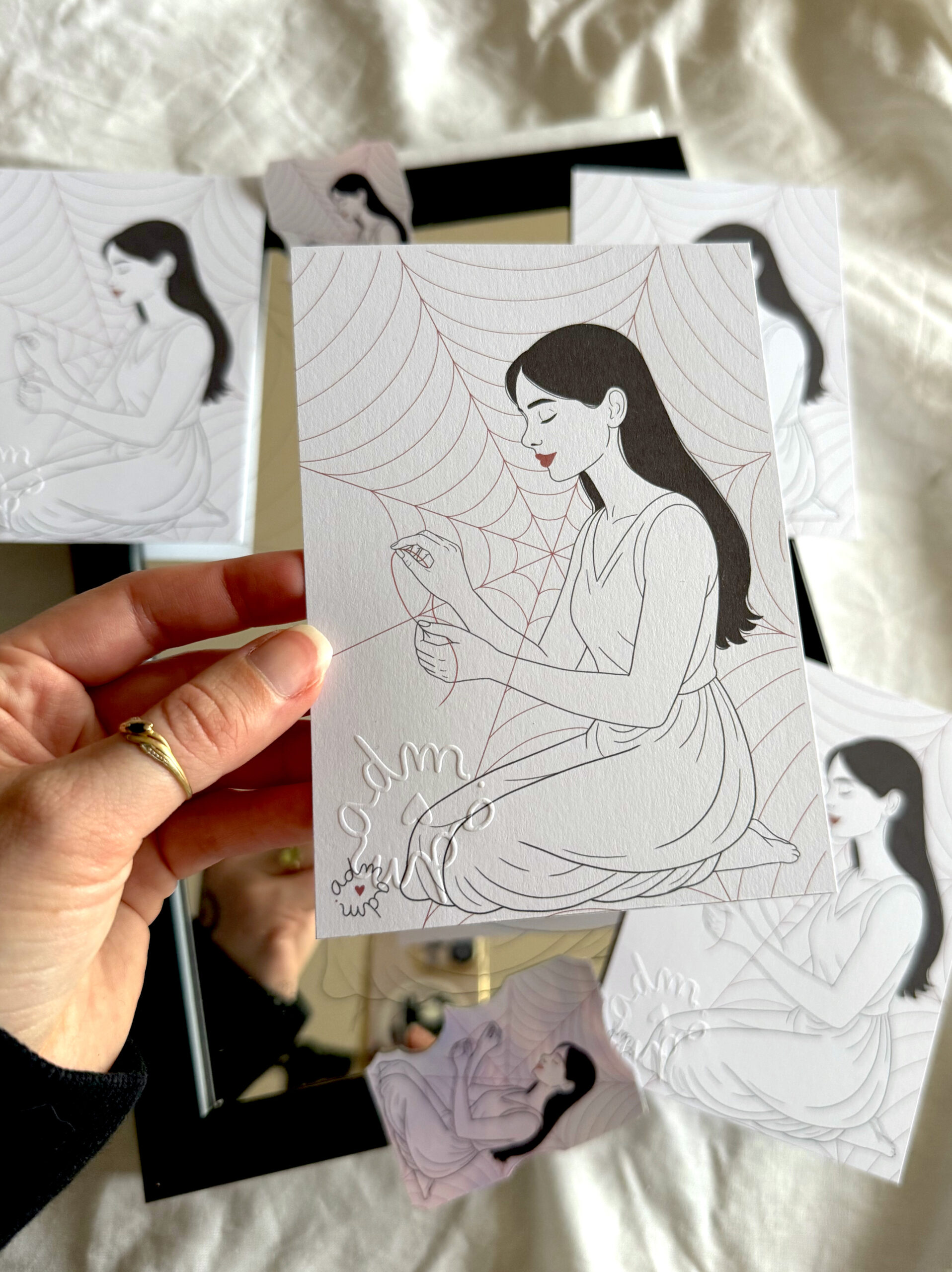 Ici disponible : en version carte A6, en stickers holographique (ou bien le pack des deux!)  et la nouveauté de cet inktober : la gravure sur miroir. (attention, il n’existe qu’un exemplaire par jour et donc par thème : à retrouver juste ici !)