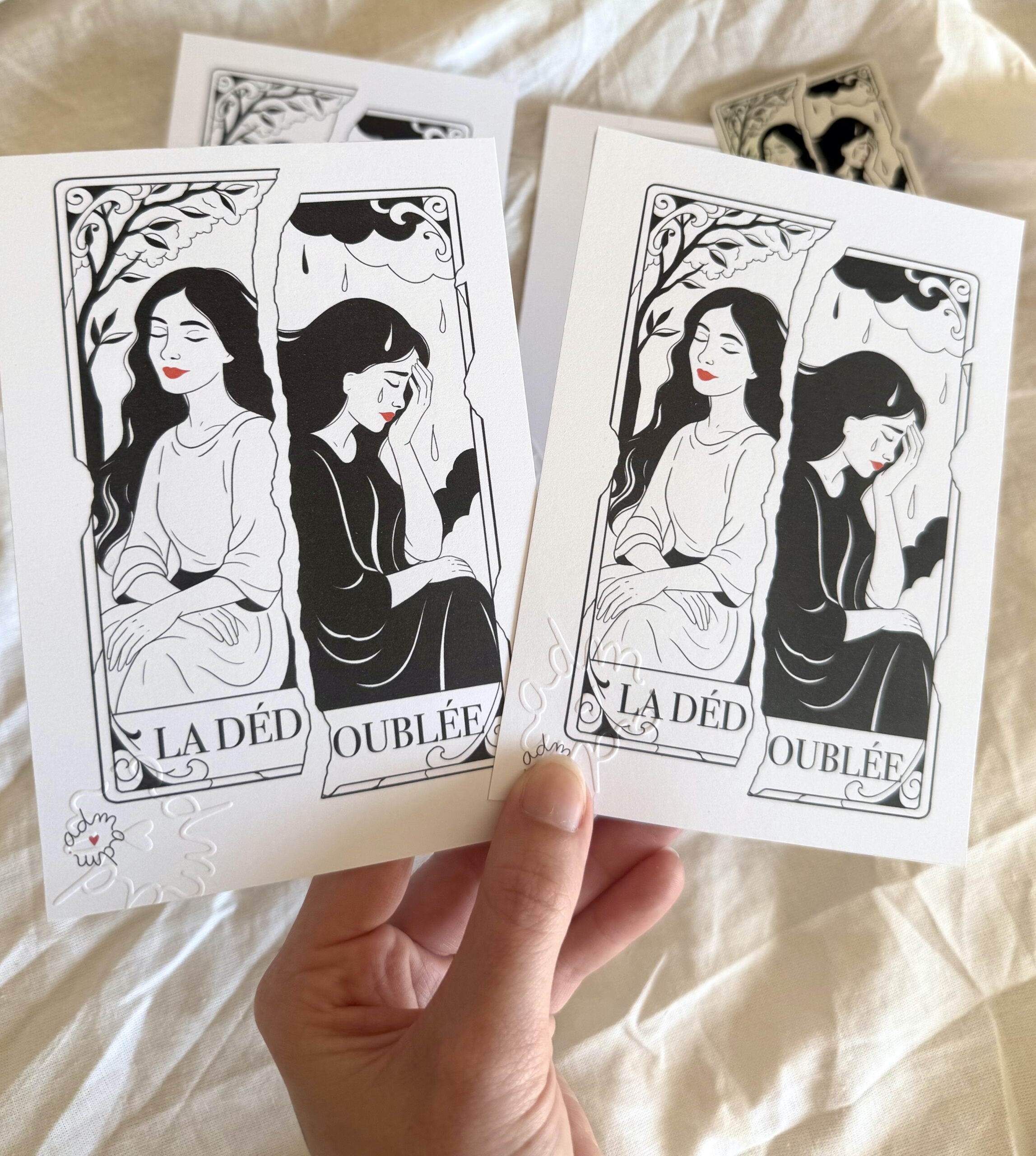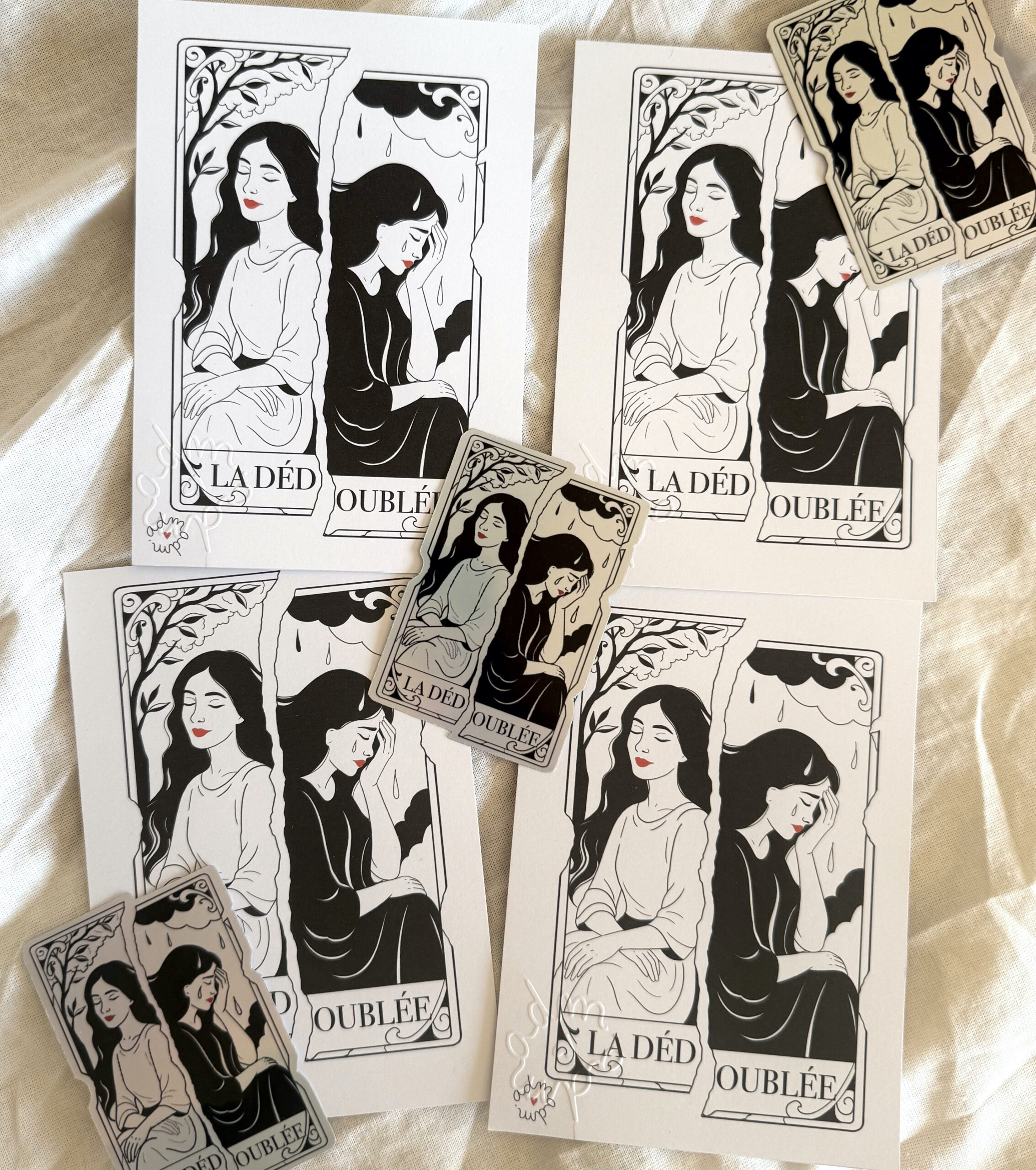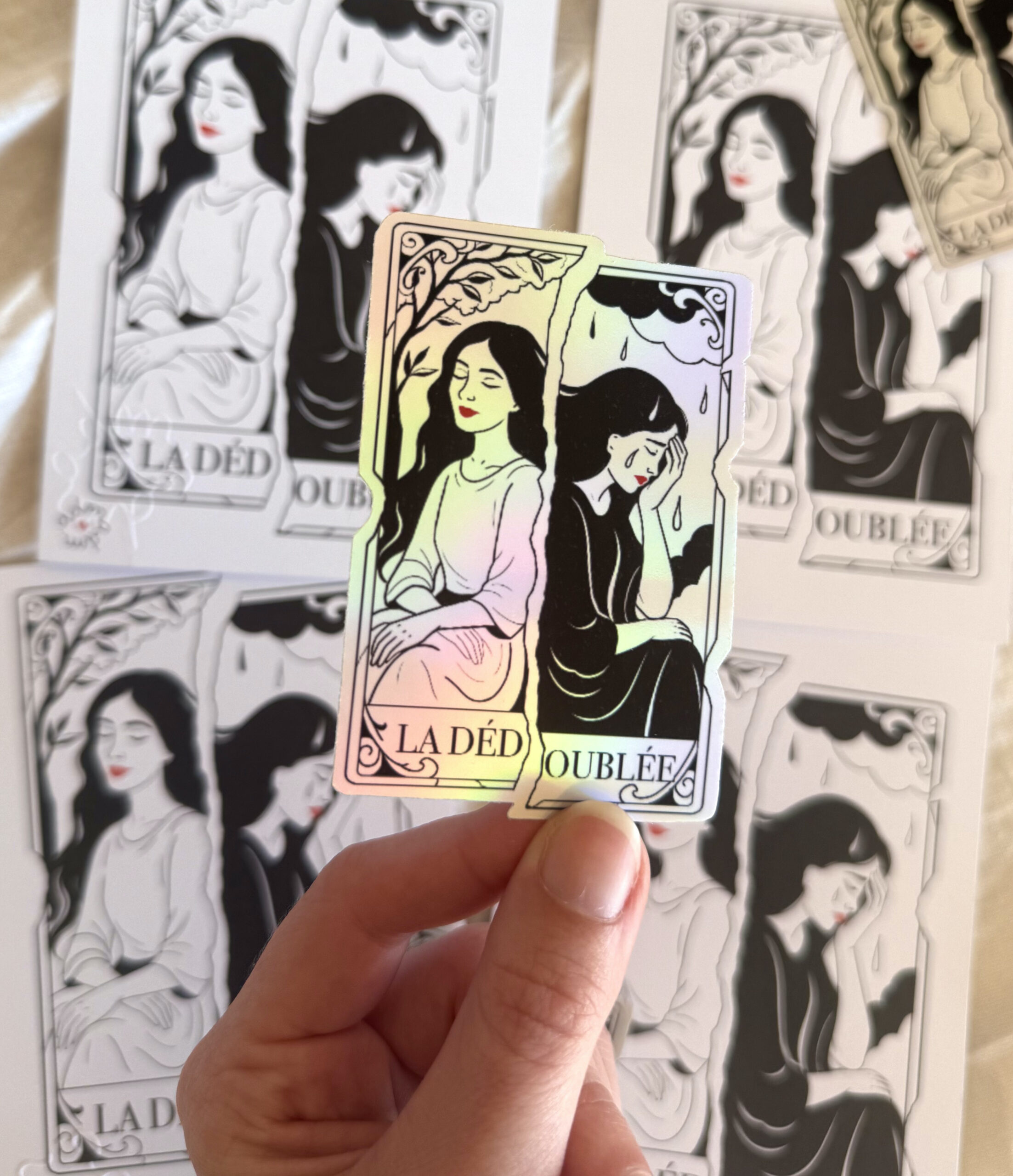 Ici disponible : en version carte A6, en stickers holographique (ou bien le pack des deux!) et la nouveauté de cet inktober : la gravure sur miroir. (attention, il n’existe qu’un exemplaire du miroir par jour et donc par thème)