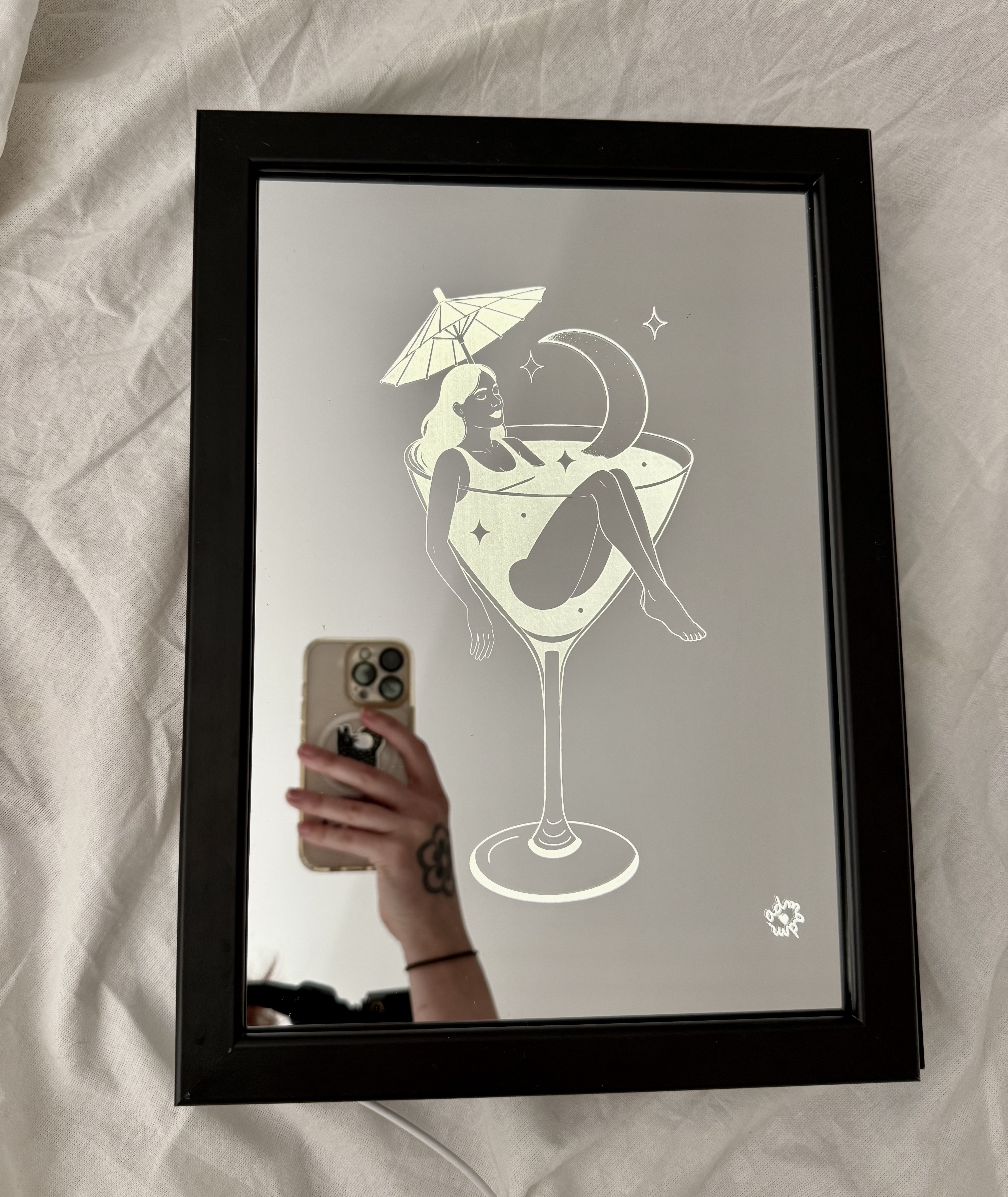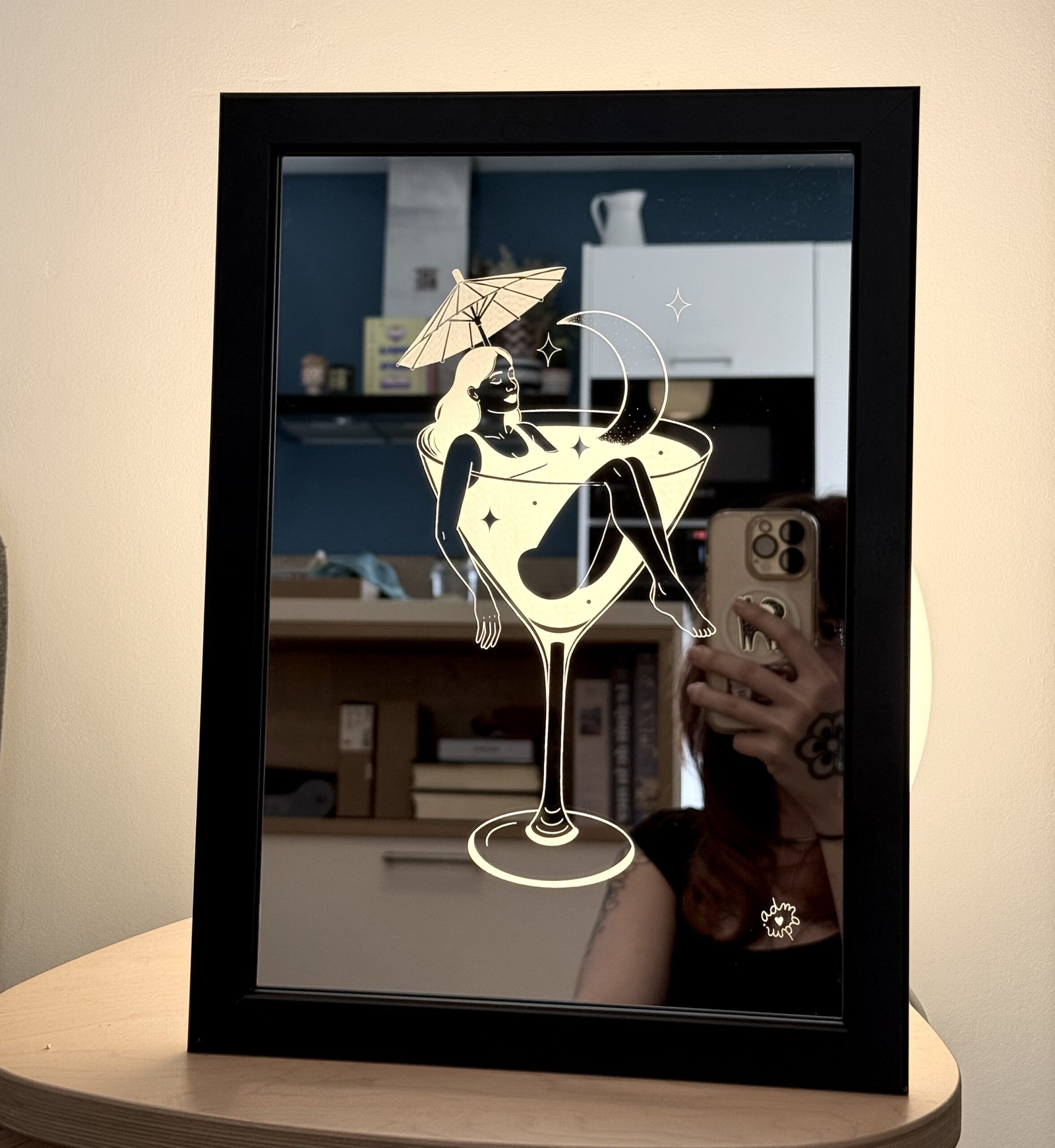 Les miroirs sont gravés par mes soins dans mon atelier,  à l’aide d’une machine laser.