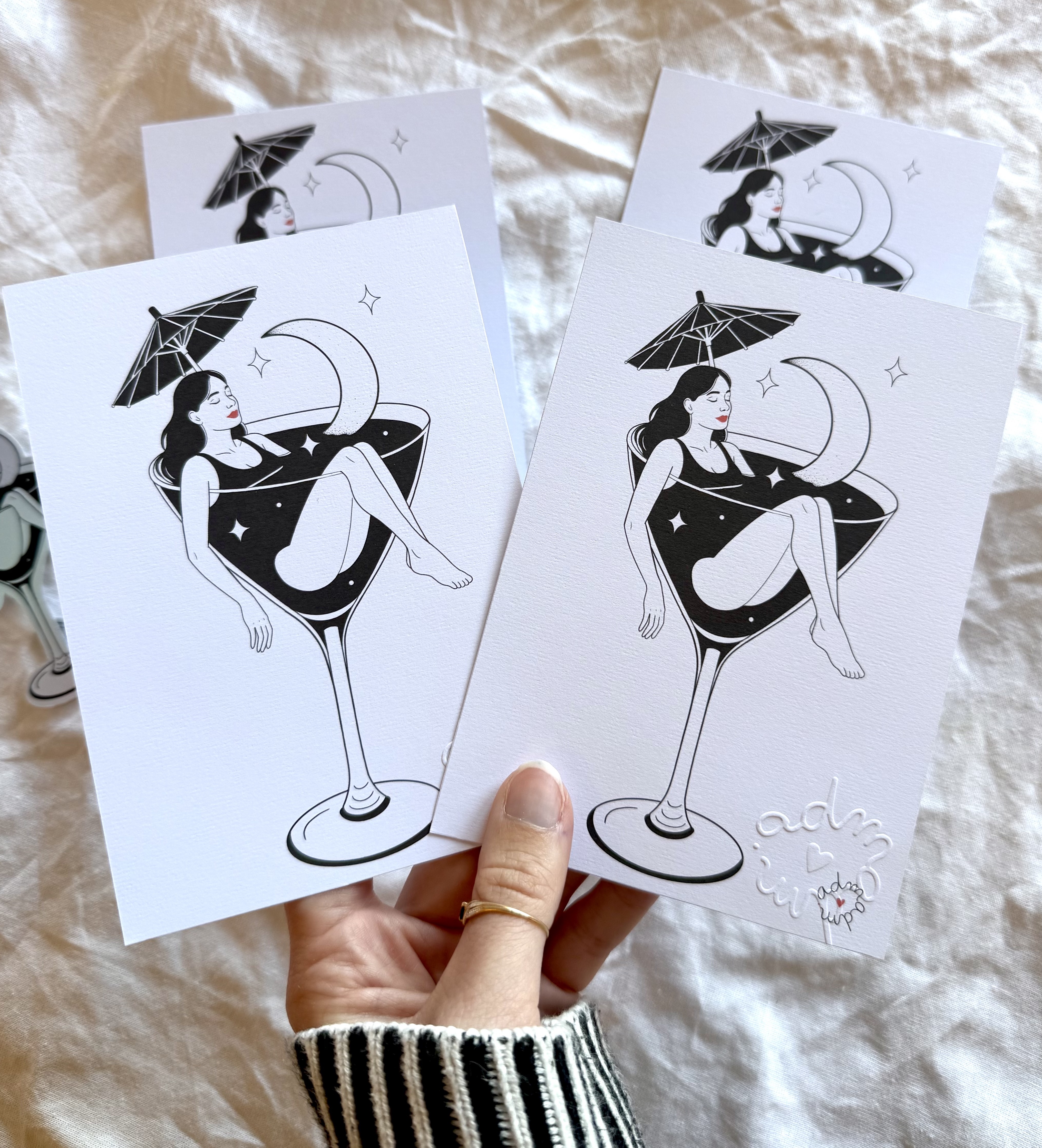 Ici disponible : en version carte A6, en stickers holographique (ou bien le pack des deux!)  et la nouveauté de cet inktober : la gravure sur miroir. (attention, il n’existe qu’un exemplaire du miroir par jour et donc par thème)