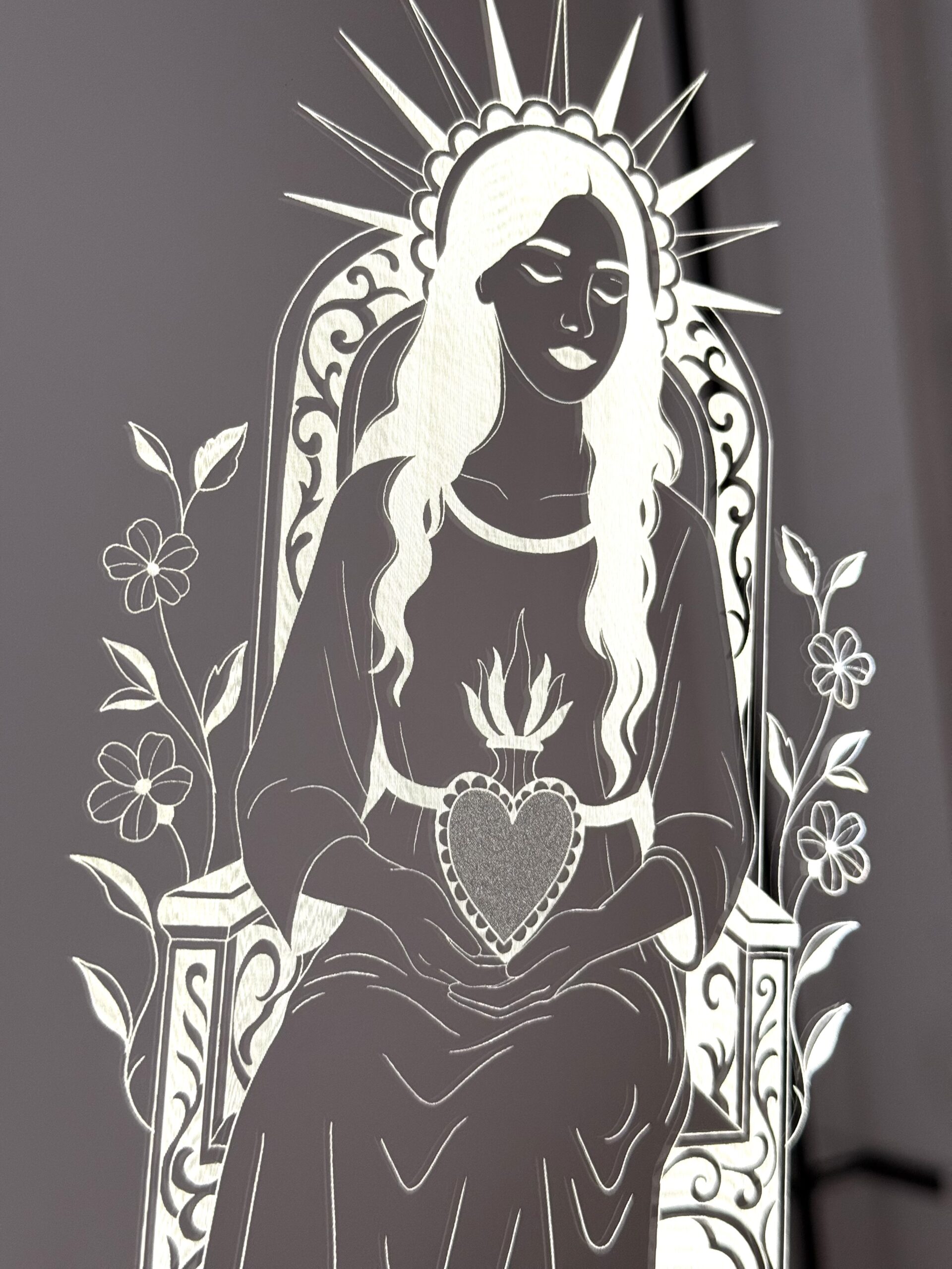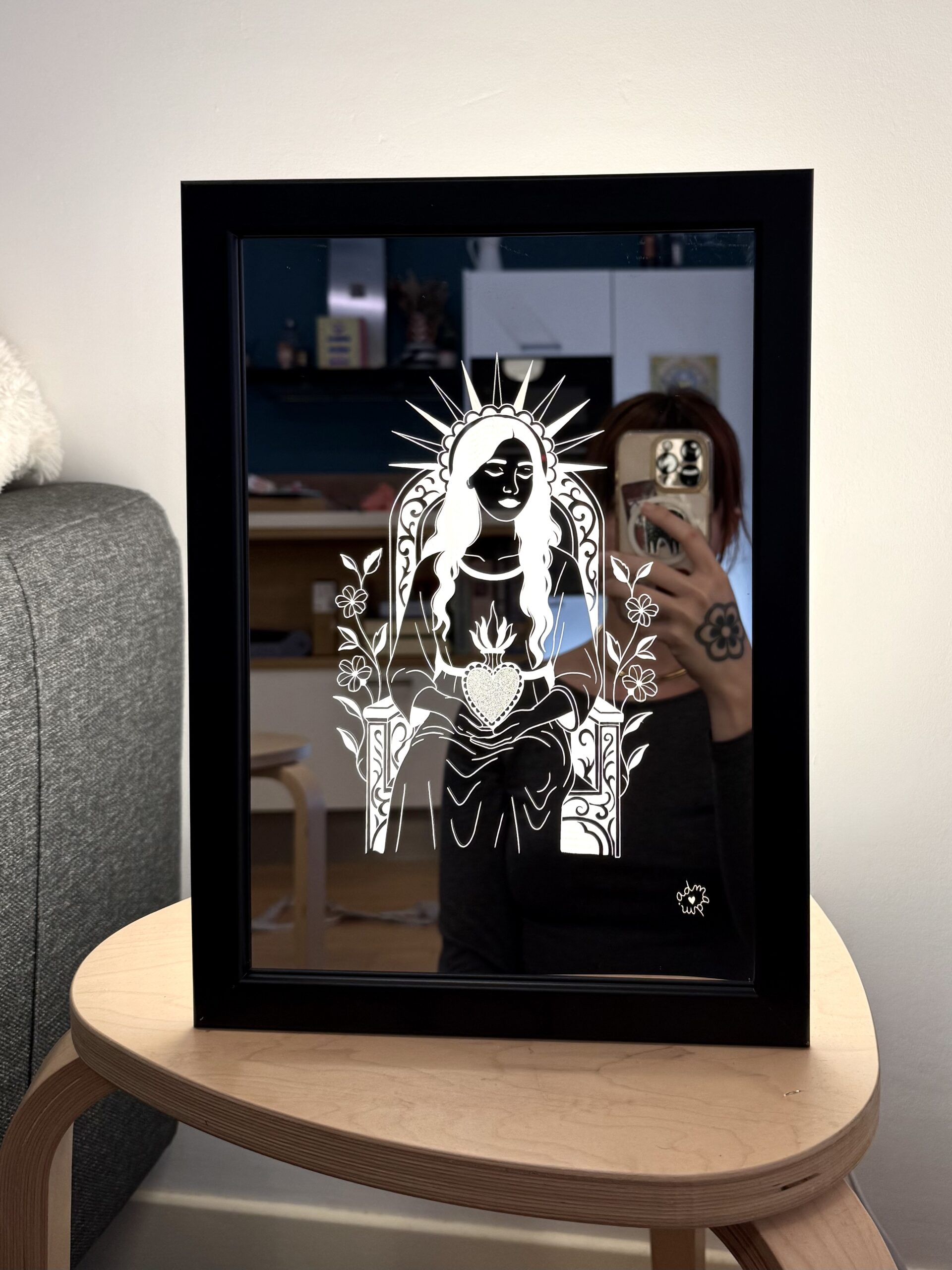 Les miroirs sont gravés par mes soins dans mon atelier,  à l’aide d’une machine laser.