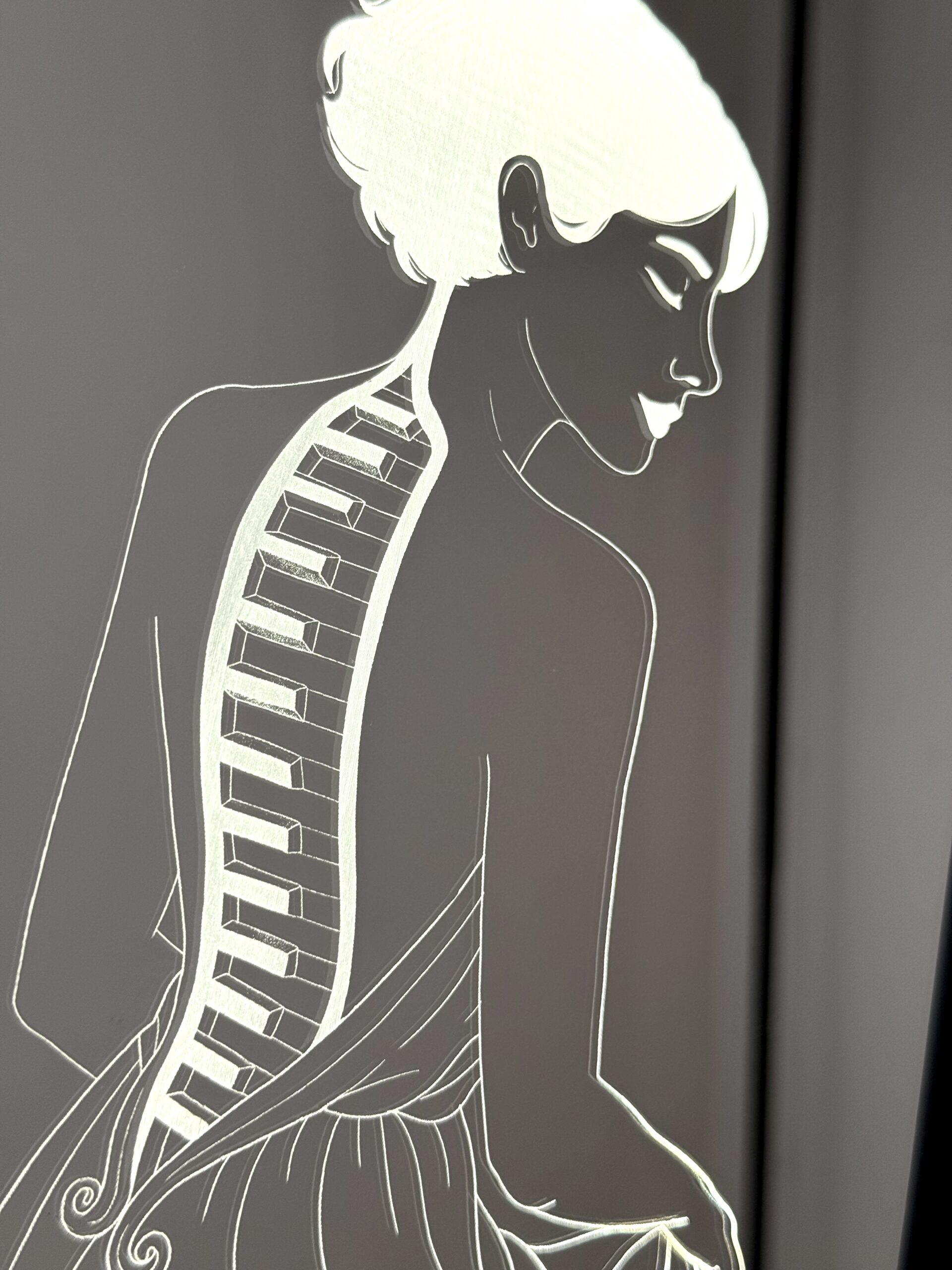 Dix-huitième  jour  : « L’Accordée  «  , la femme-piano: quand elle se penchait, on devinait sur sa peau les lignes d’une sonate : la musique l’avait choisie pour s’incarner.