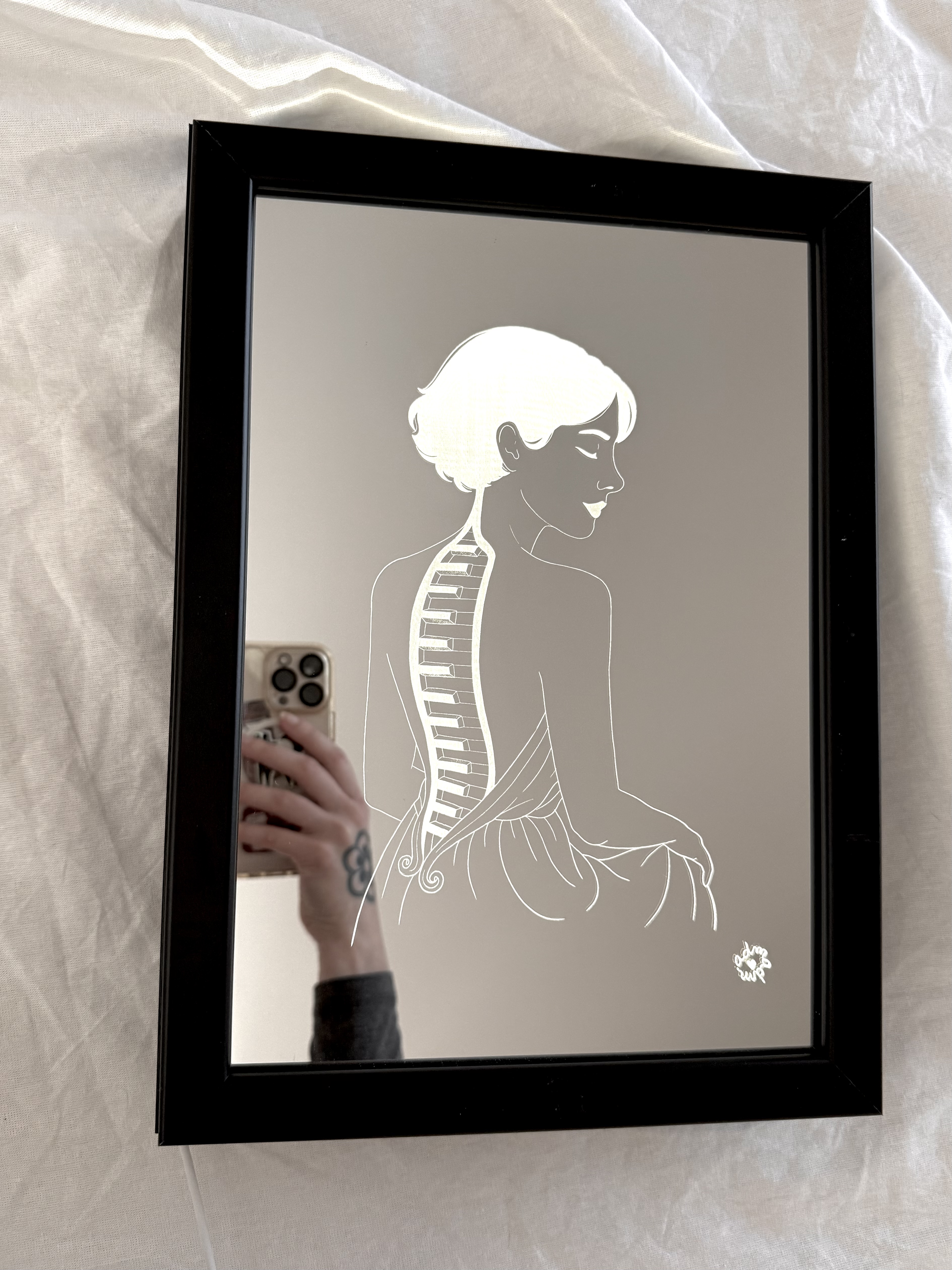 Les miroirs sont gravés par mes soins dans mon atelier,  à l’aide d’une machine laser.