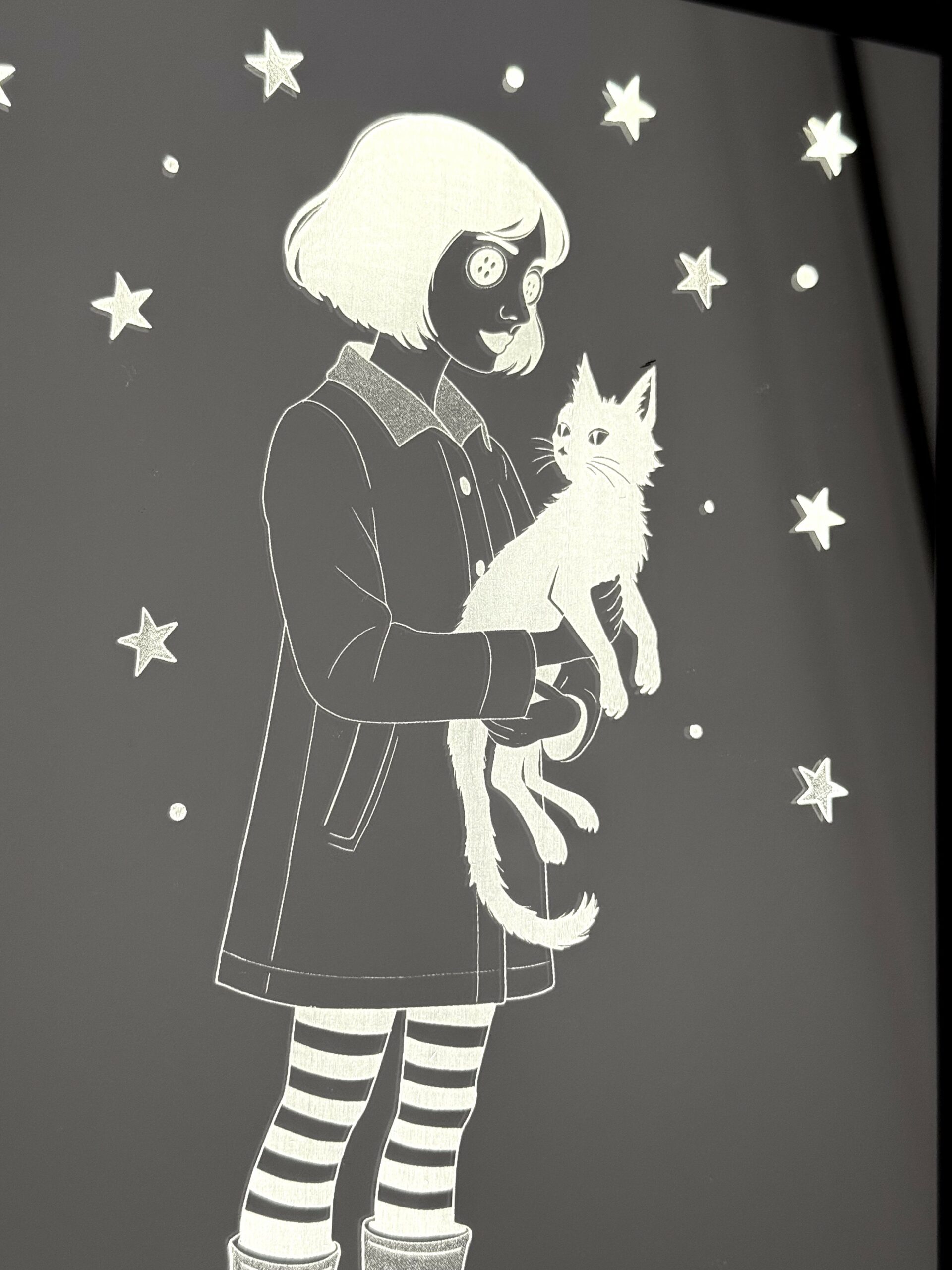 Les miroirs sont gravés par mes soins dans mon atelier,  à l’aide d’une machine laser.
