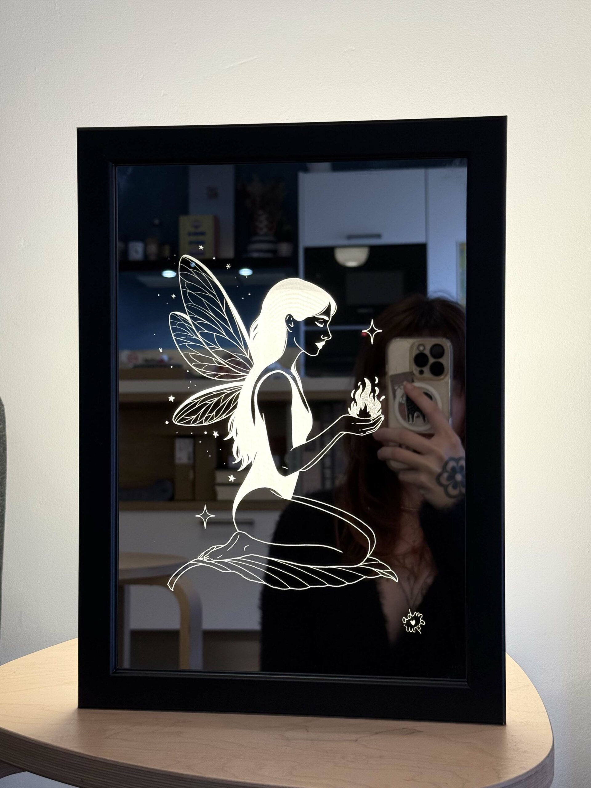 Les miroirs sont gravés par mes soins dans mon atelier,  à l’aide d’une machine laser.