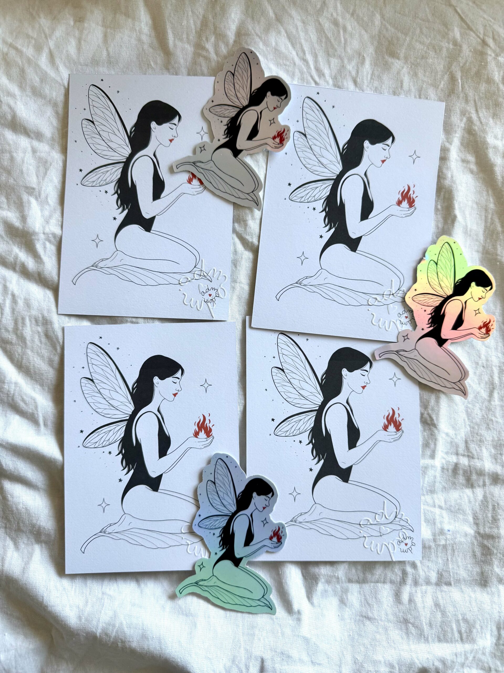 Ici disponible : en version carte A6, en stickers holographique (ou bien le pack des deux!)  et la nouveauté de cet inktober : la gravure sur miroir. (attention, il n’existe qu’un exemplaire du miroir par jour et donc par thème)