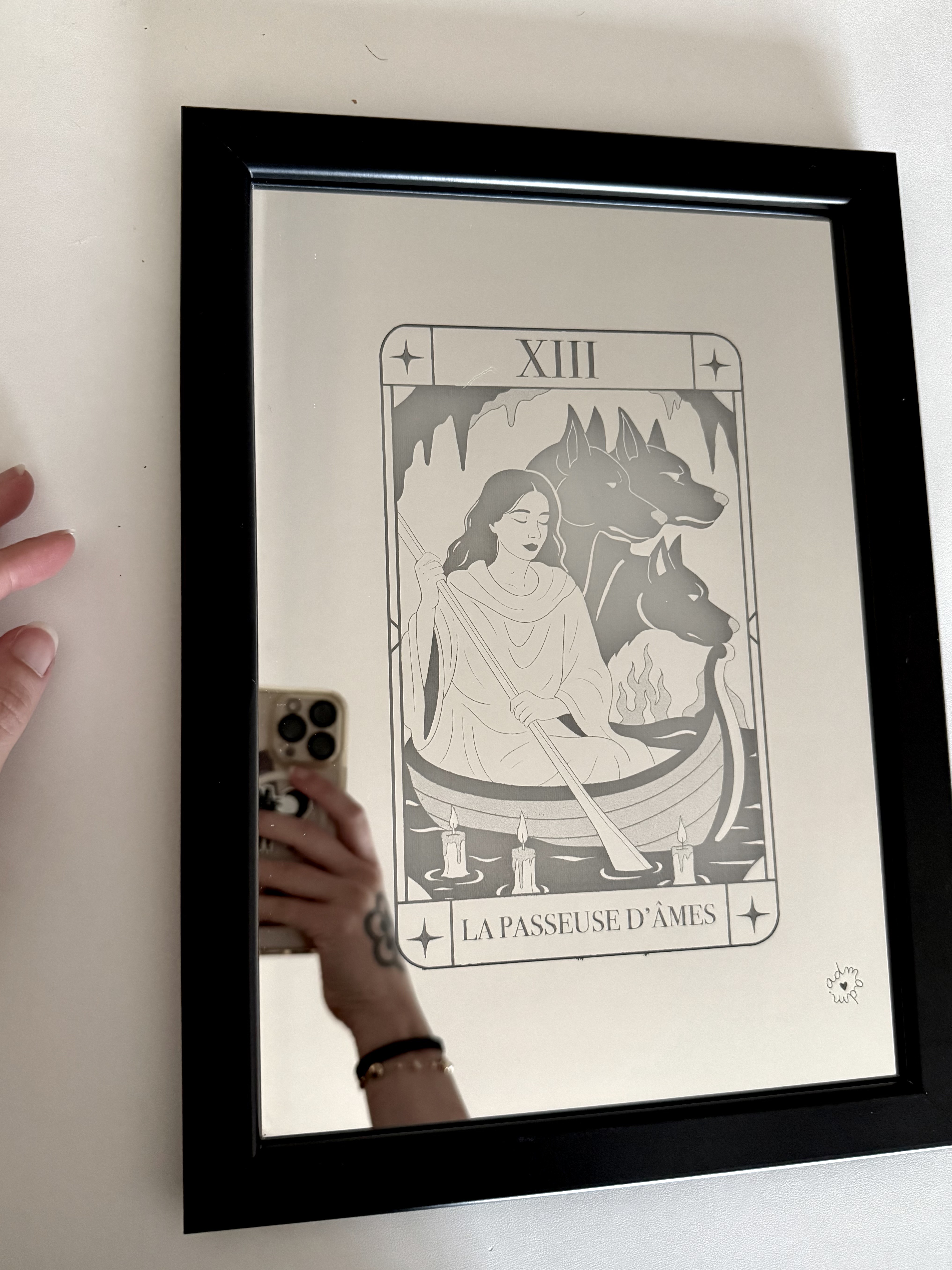 Vingt-cinquième jour : « La passeuse d’Ames », gardienne des Enfers, elle conduit les damnés le long du Styx. Née des nuits de Nyx, elle guide les âmes sans sépulture dans la noirceur des enfers. Symbole de la transition, de la paix face à la fin, elle incarne la traversée silencieuse de tout ce qui doit mourir pour renaître.